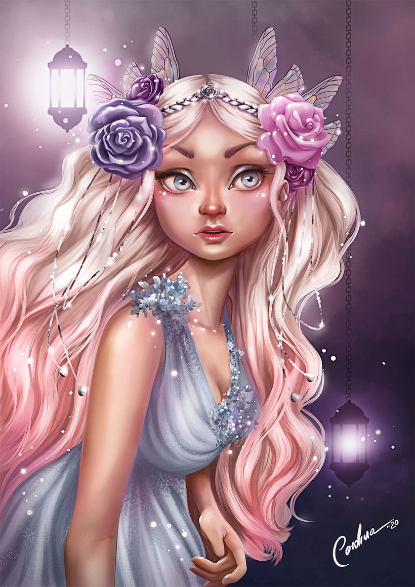 This looks really good! I love every details of this drawing - her face expression, hair, dress, the roses, the wings on her head are all so pretty and gives off a fairy-like feeling! Well done on your final project! I'm glad to know that you learned a lot and applying my techniques into your workflow, keep drawing! Thank you for joining my course. :)