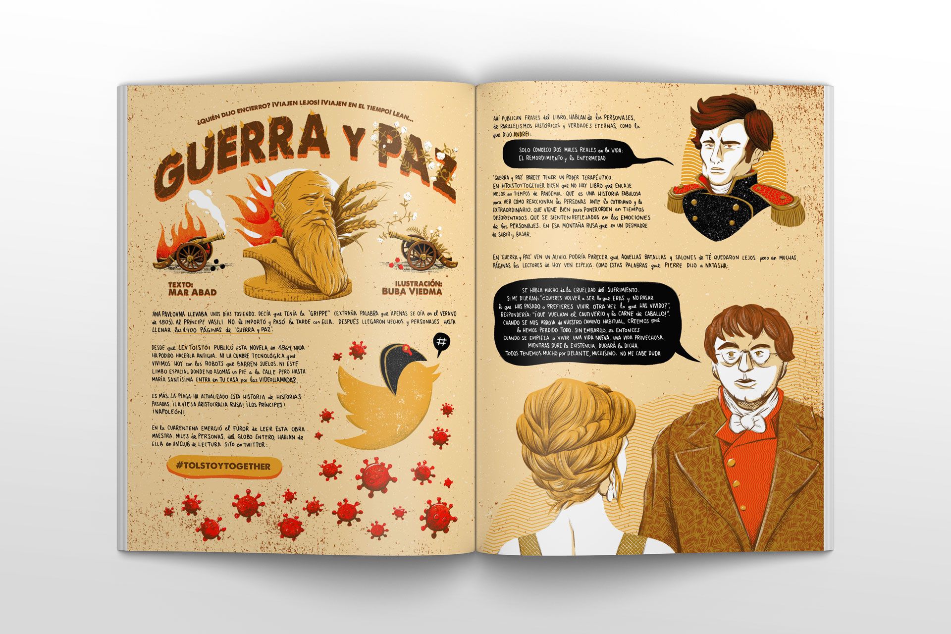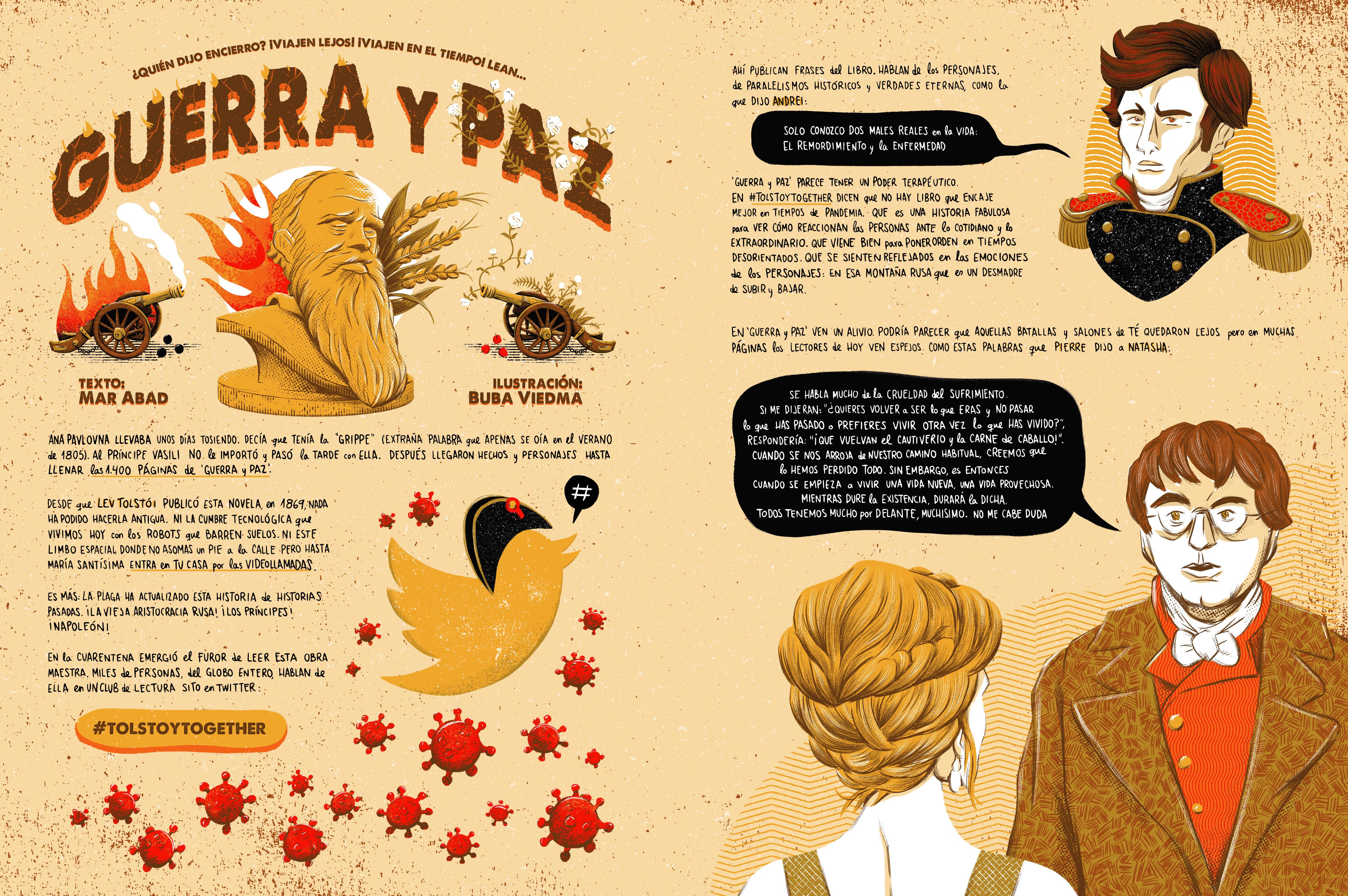 Ilustración y diseño de El Folletín Ilustrado de Yorokobu dedicado a la novela Guerra y Paz de Leon Tolstoi.
