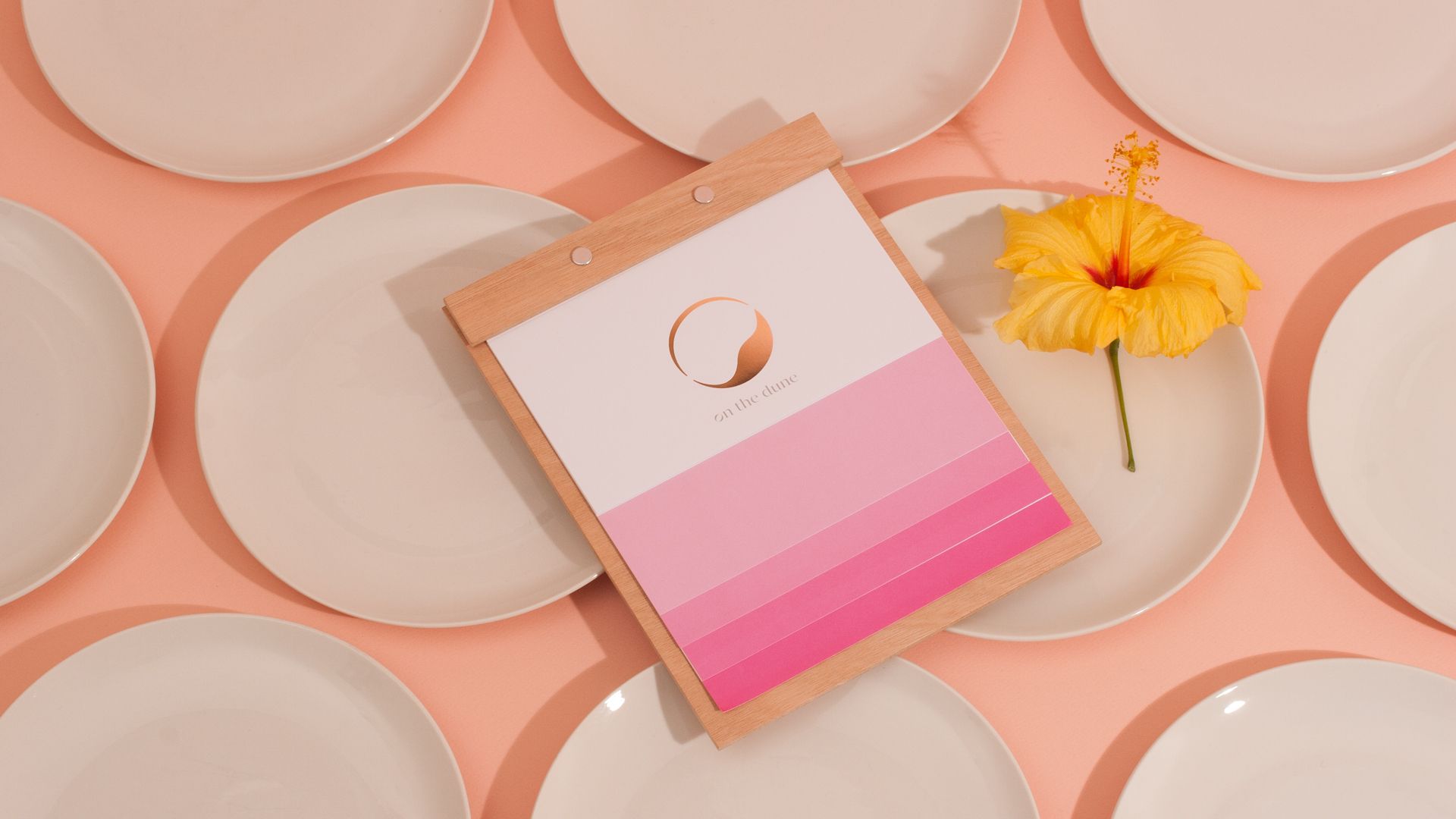 La belleza de los atardeceres se plasma en esta propuesta de menús. Este restaurante caribeño tiene una vista espectacular porque desde él se pueden apreciar tanto la playa como los colores del cielo. Esa fue mi inspiración del diseño del menú. El rosado es mi menú preferido, su tono es el mismo que el de las sombrillas de playa del hotel. 💕