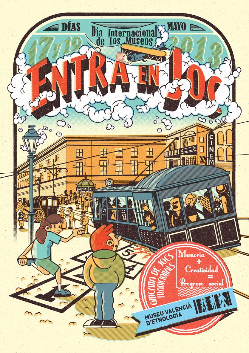 Propuesta de gráfica y cartel para `Entra en Joc´ actividades organizadas por el Museu Valencià d´Etnologia, Valencia (España), en el día internacional de los museos.