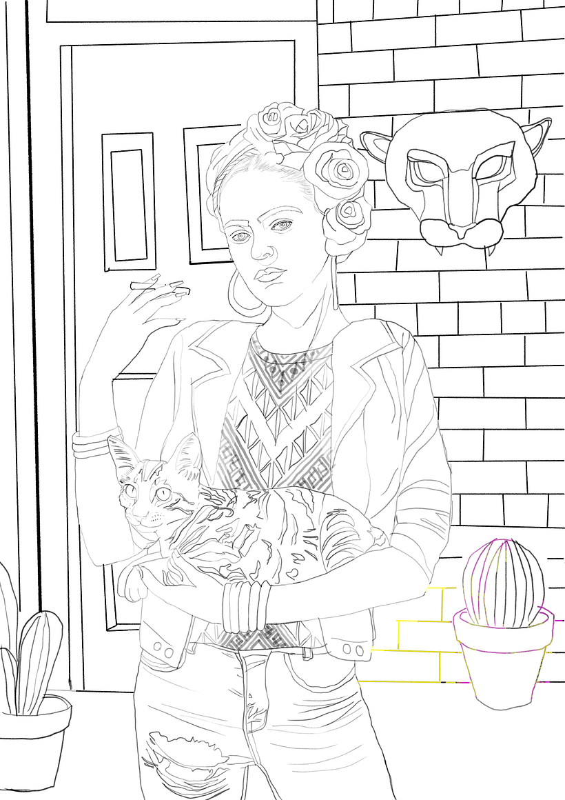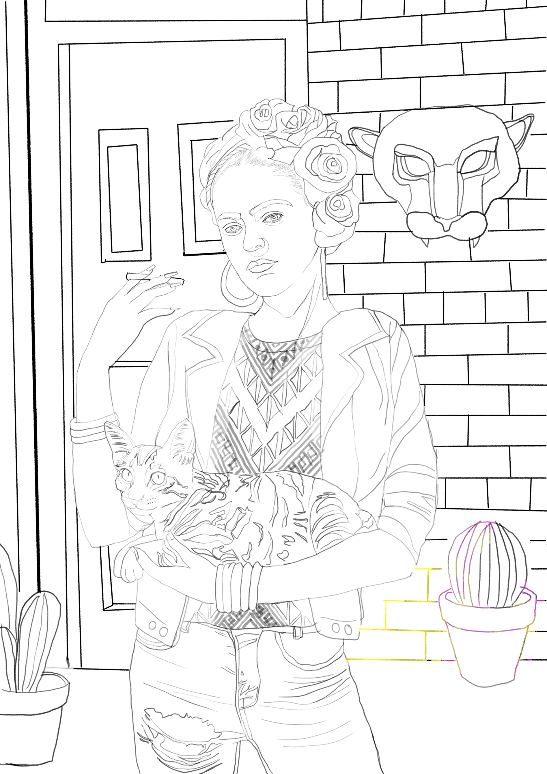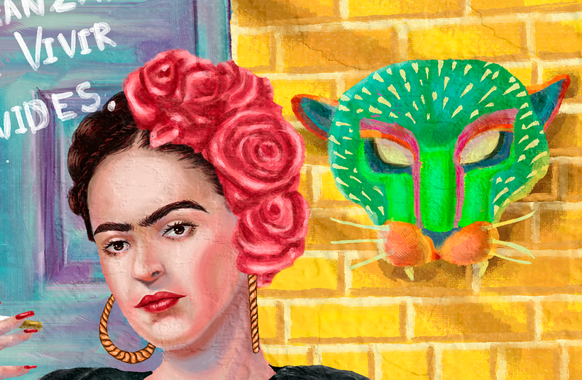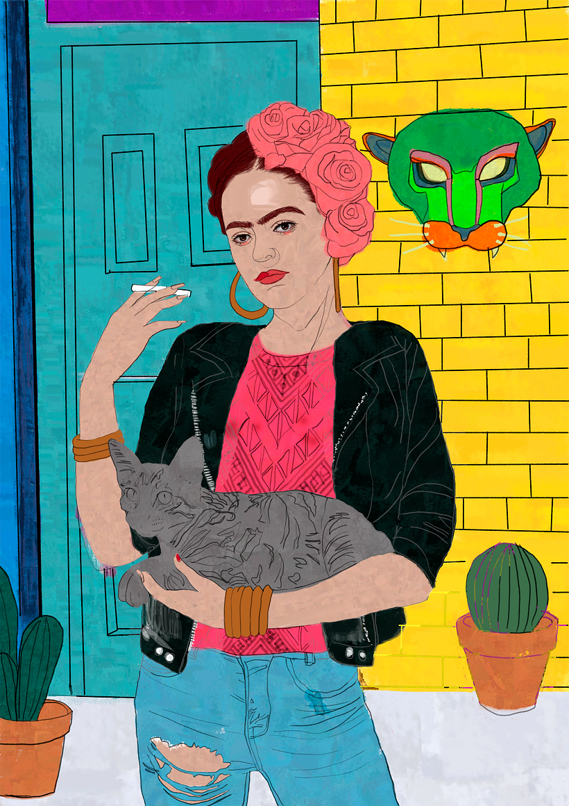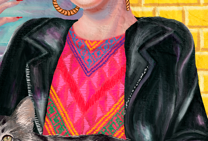 I love a Frida from 2020! It is amazing all the details that you have put in that provide very good information and complement the illustration very well. I like that you have dared with so many textures and even added text. Great!
