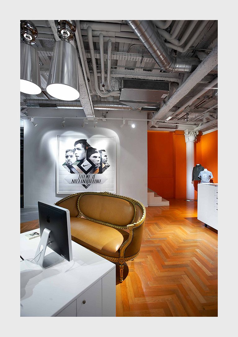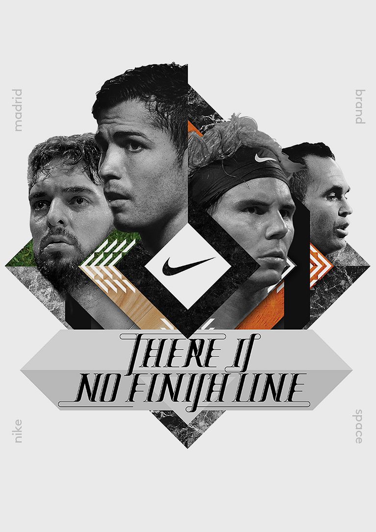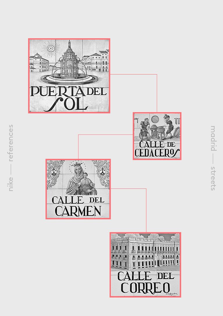 Recently, Nike launched the new Brand Space in Madrid. They wanted a wall collage inspired in Madrid street tiles. Also they wanted their brand ambassadors were part of the artwork, and a specific lettering.