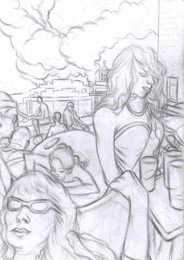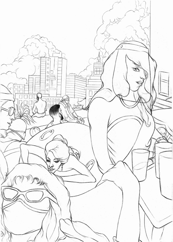 Os dejo las tres fases del proceso con el boceto definitivo, el trabajo de linea y el coloreado final: