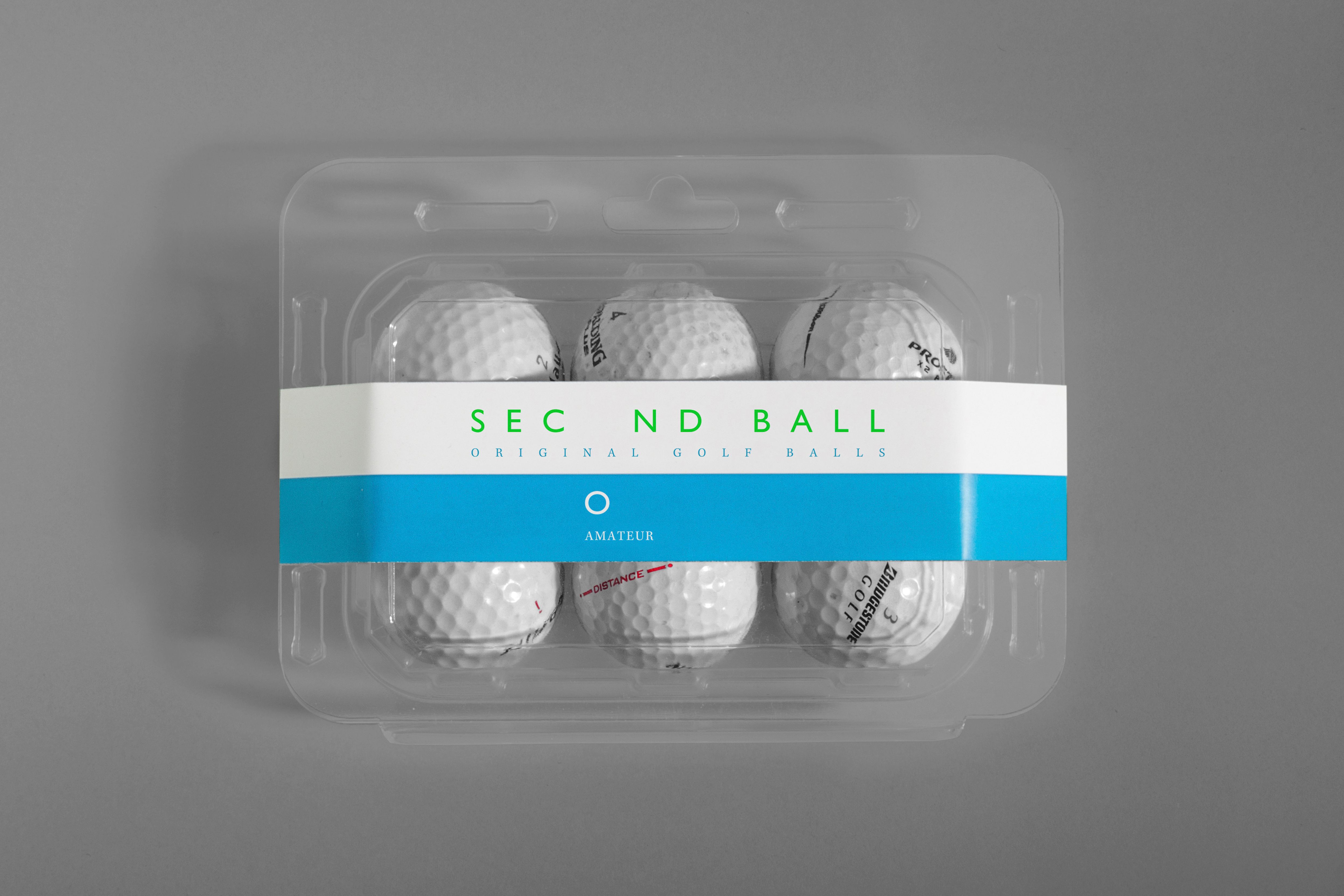 Identity, labels, and website for a secondhand golf ball company. These balls are recovered from the golf course's own ponds.