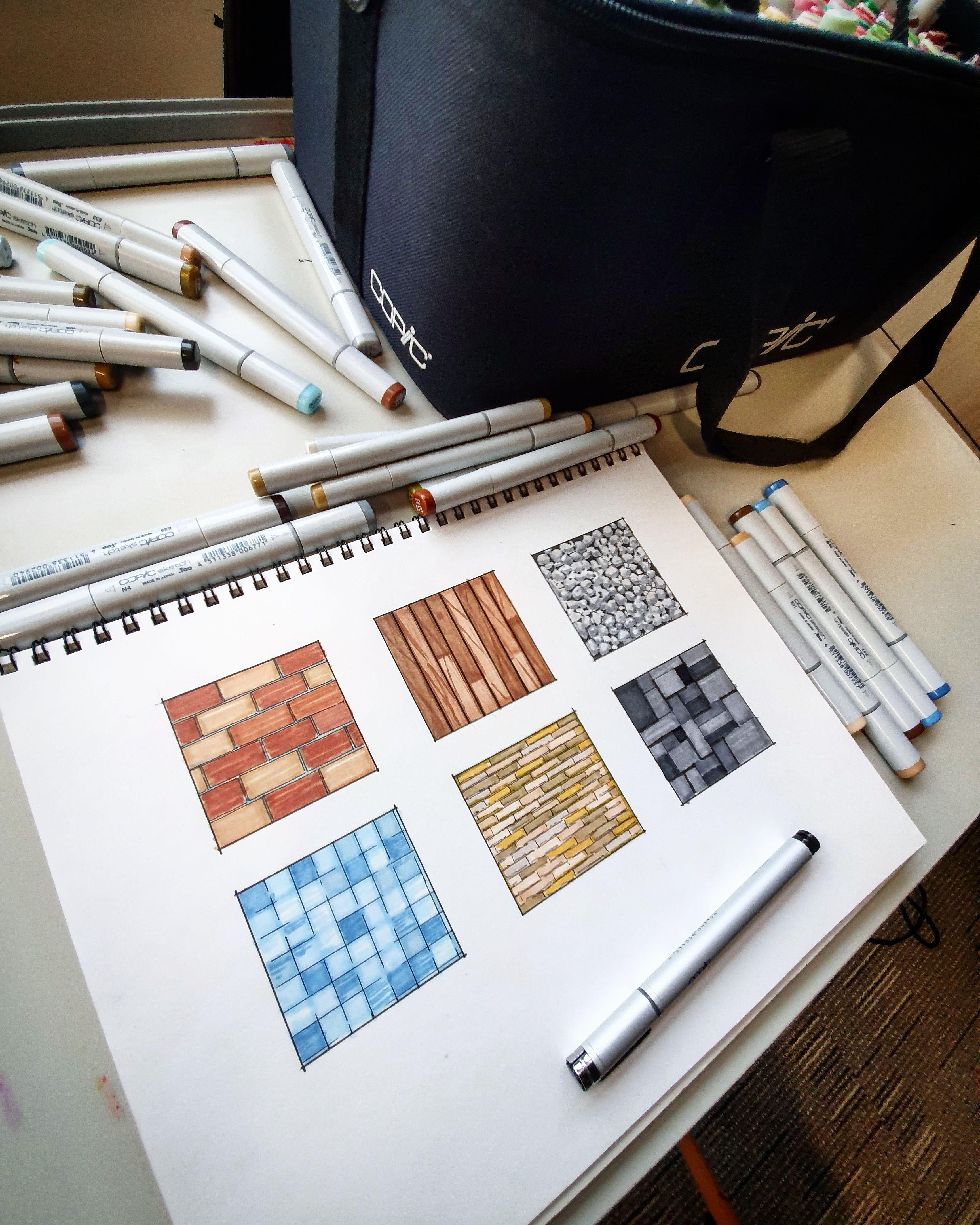 This work was done at the headquarters of the Japanese brand of pens Copic, coatings used in interior and exterior projects.