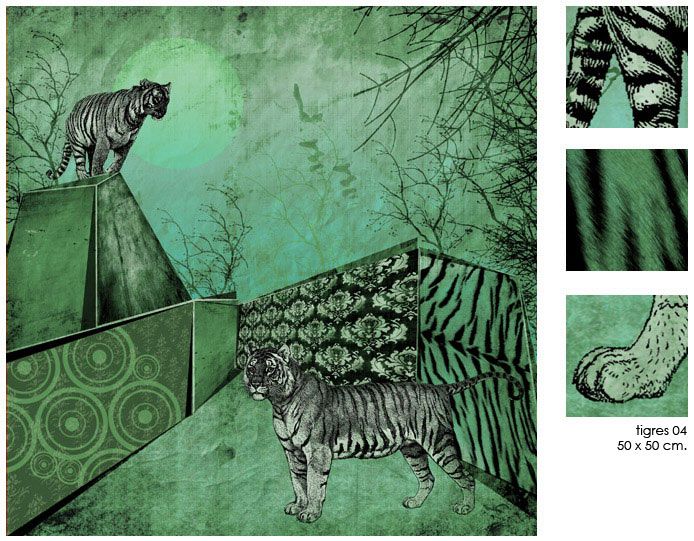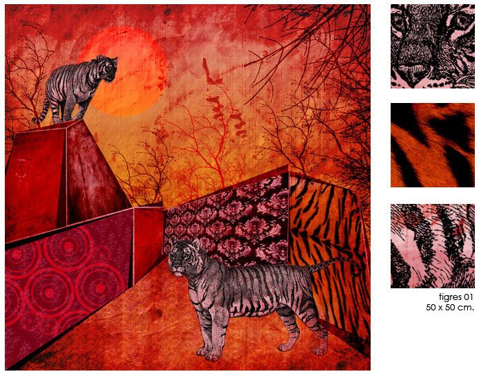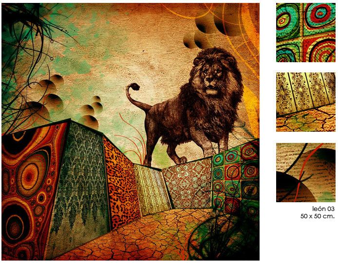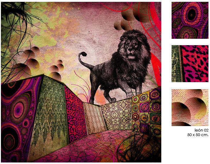 Cabras. Tigres. León. / con sus respectivas variaciones de color / 50 x 50 cm.
