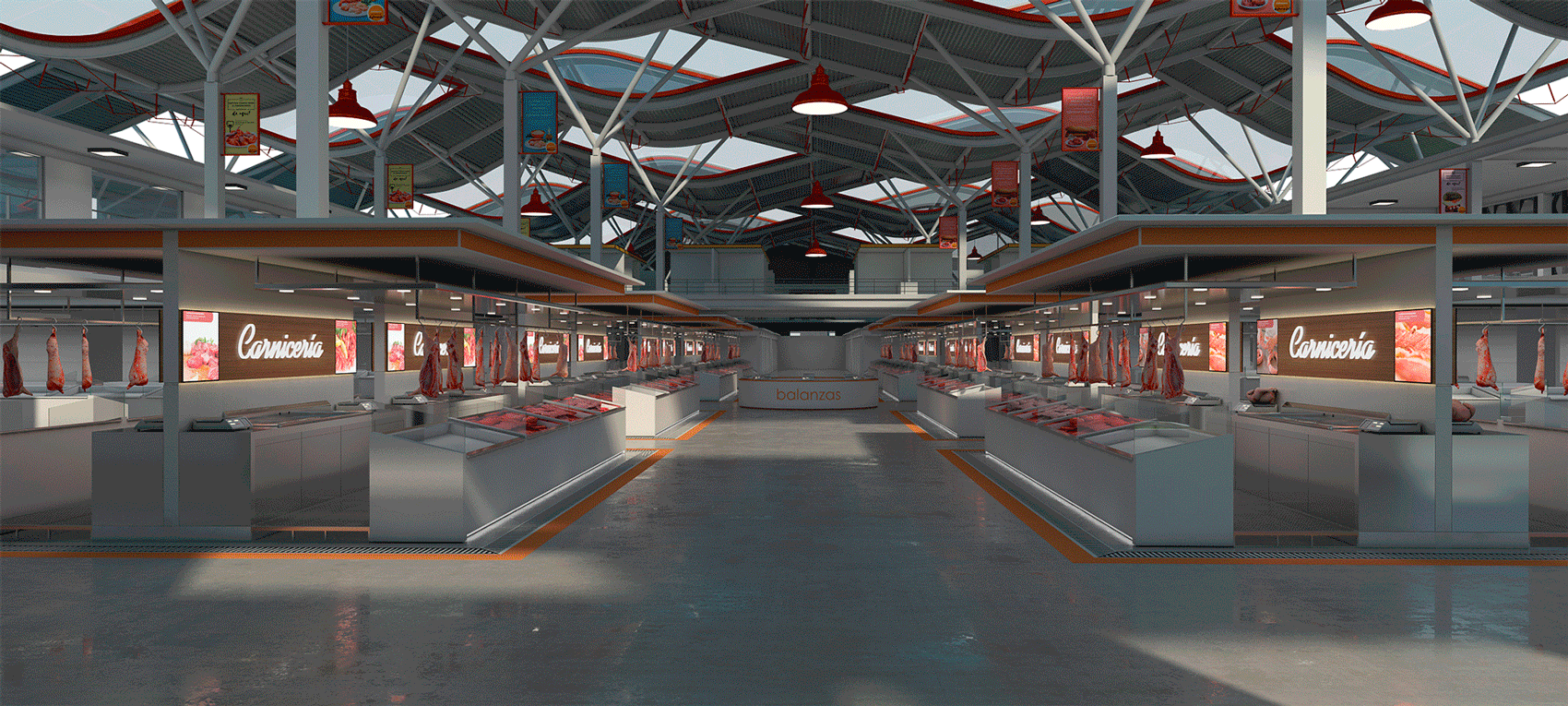 Algunos de los trabajos que realicé para elaborar la imagen fue, recortar personas a partir de fotografías que tomé en un mercado. también conseguí, recorté y adapté (al render) las imágenes de los alimentos en exhibición.