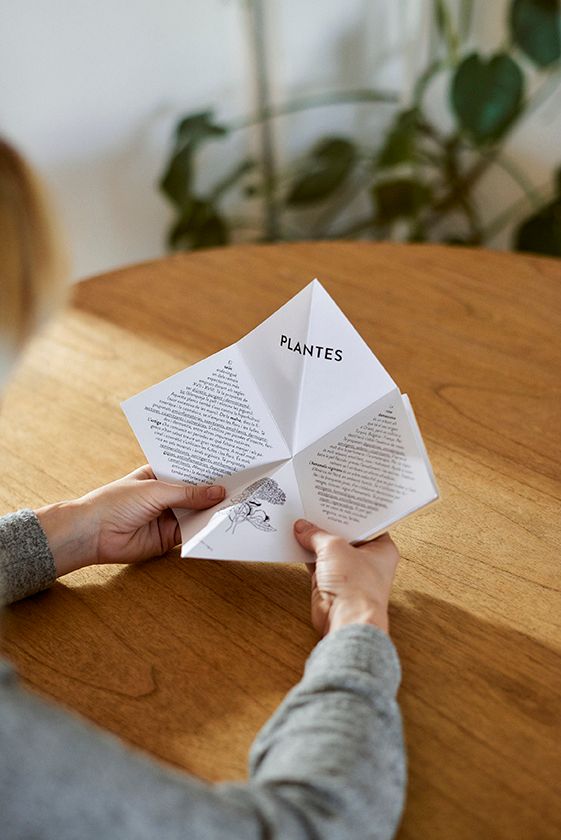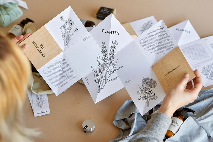 La forma de la etiqueta nos permite introducir en el pack la planta o flor seca que es utilizada en cada producto. Así, el cliente puede ver rápidamente la planta que está asociada a cada producto y puede hacerse una idea del aroma que tendrá la crema.