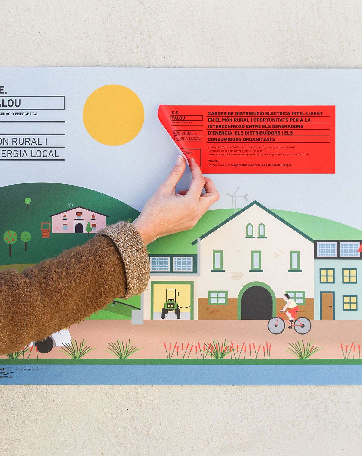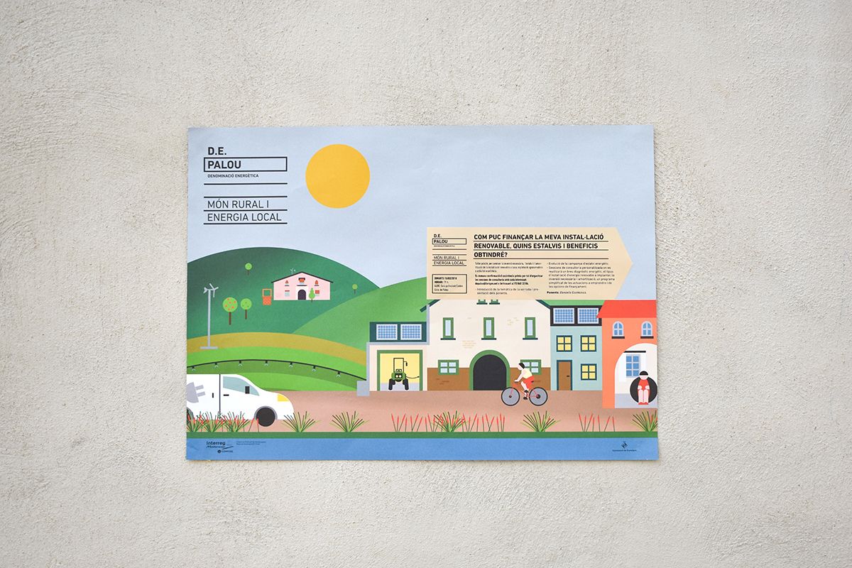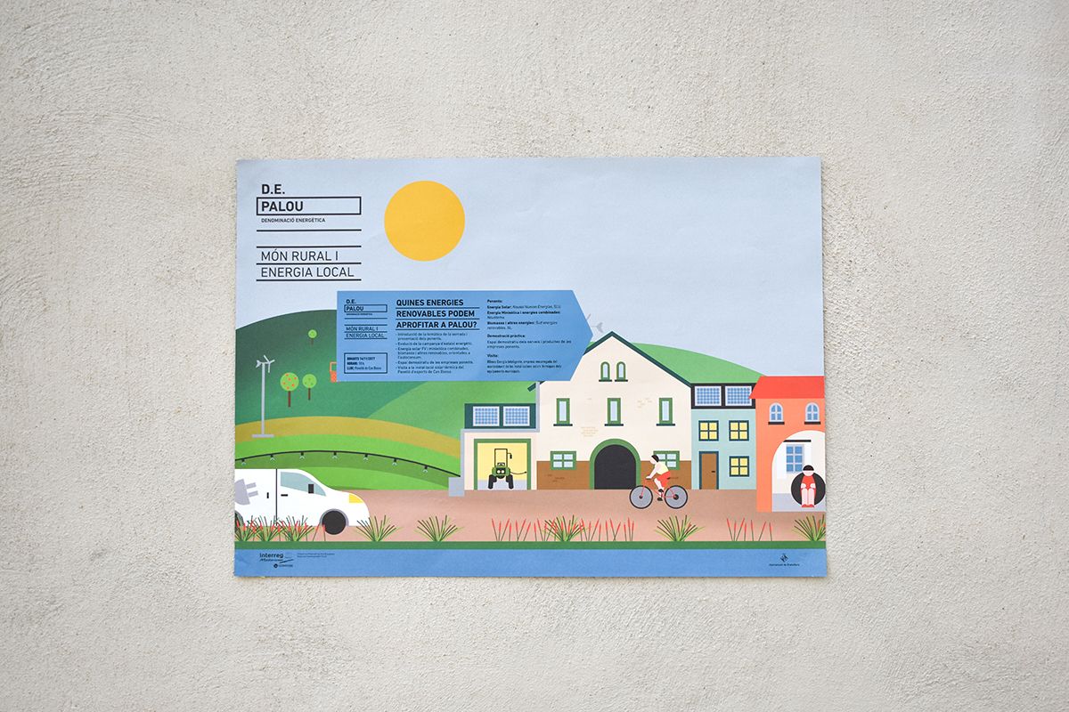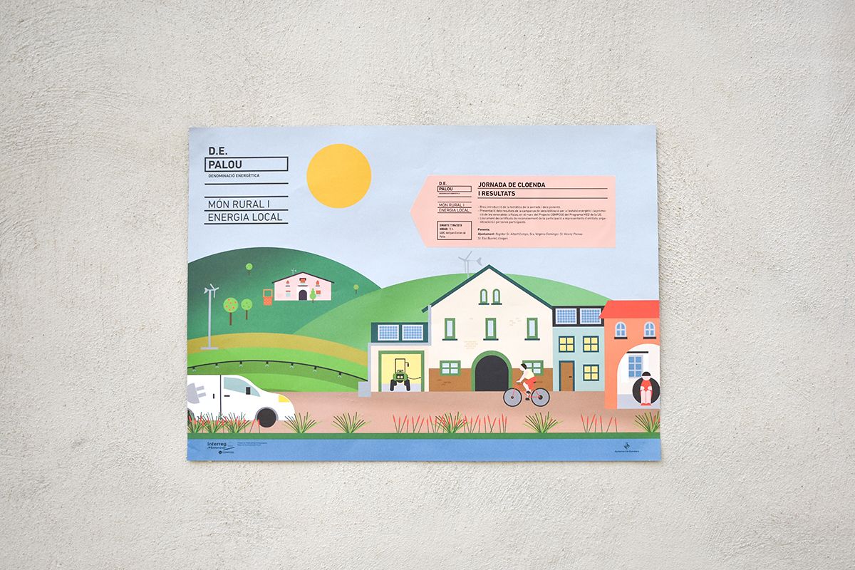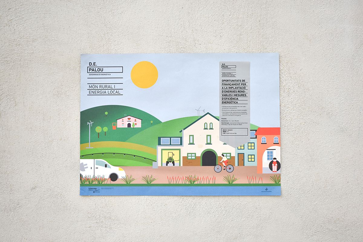 D.E. Palou es un proyecto europeo sobre energías renovables en el mundo rural. Se nos encargó un cartel con información de diversas jornadas.