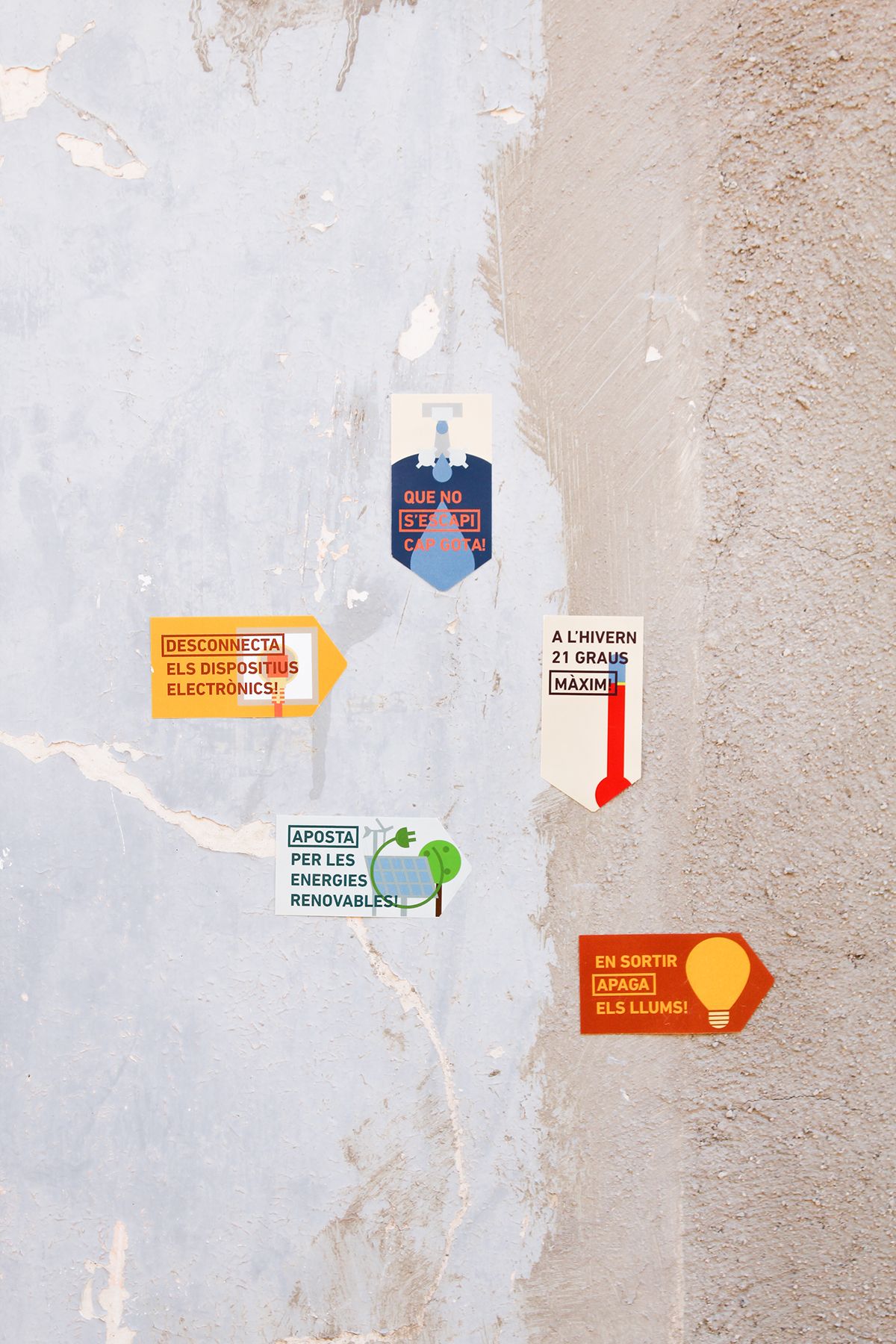 Basado en la idea de un cartel atemporal, se realiza un solo cartel como base, ilustrando las energías renovables; hidráulica, solar y eólica. Cada mes se puede añadir la información de la jornada de ese mes impresa en papel electroestático sustituyendo a la del mes anterior. Es decir, no utilizamos colas, el papel se quita y pone fácilmente y hace que no debamos cambiar el póster base.