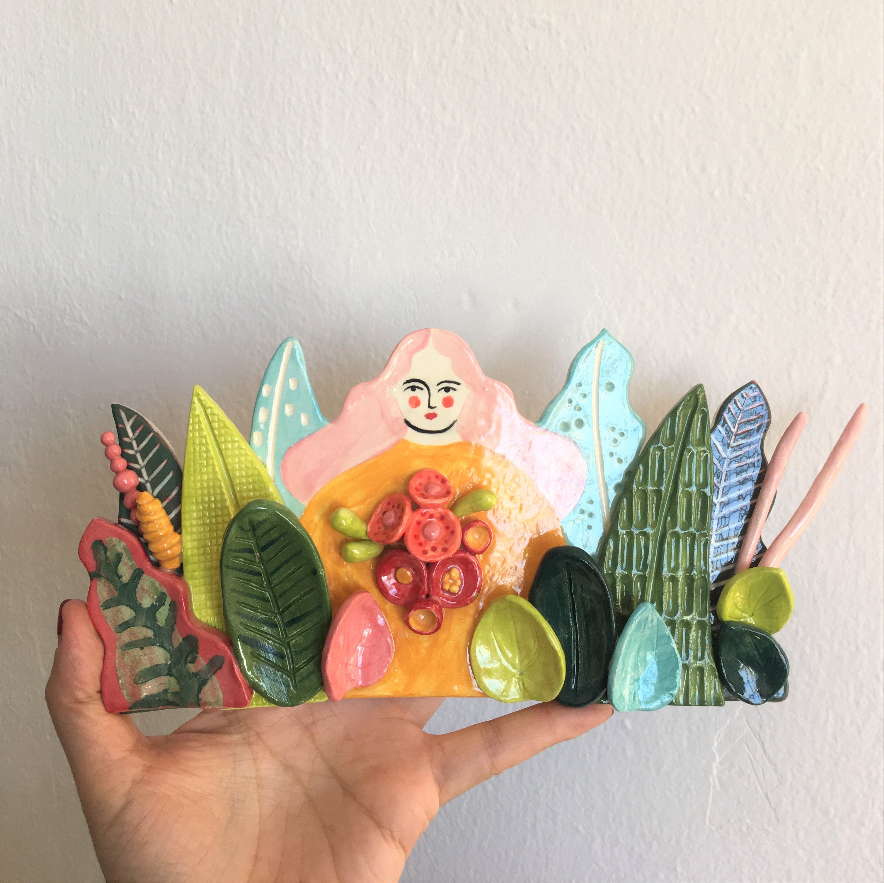 Ilustración hecha en cerámica con distintas técnicas de modelado a mano como parte del curso "Técnicas de Ilustración y modelado en cerámica" de Domestika.
