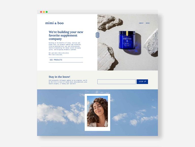 Mimi & Boo is a company dedicated to extending healthspan through premium supplements and consumer education. Its design is inspired in the Mediterranean.