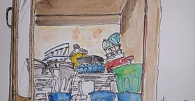 Depict a cityscape using digital and analog techniques to find your own illustration style