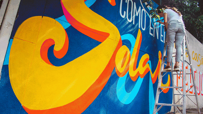 Entre sus constantes destacan las paletas de colores vibrantes, las formas agigantadas de las letras, las ilustraciones que envuelven los proyectos de lettering y la experimentación con diferentes formas.