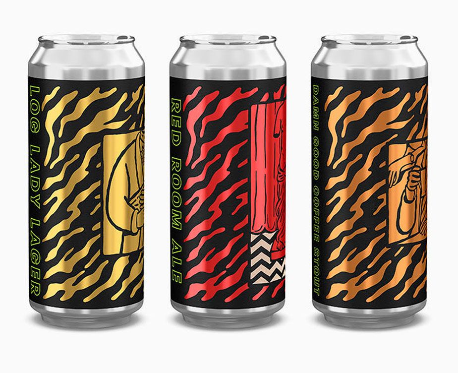 Se trata de tres variantes, cada una bautizada según personajes o hechos relevantes de la serie: 'Log lady lager', 'Red room ale' y 'Damn good coffeestout'. Los diseños de las etiquetas, por su parte, ilustran a la perfección cada una de esas escenas y siguen un esquema de color perfectamente atribuible a Twin Peaks. Las ilustraciones fueron creadas a partir de unos bocetos que el propio Lynch había utilizado para el merchandising de la serie, agregándoles texturas clásicas como el suelo zigzagueante de la habitación roja y el pattern que se repite en las tres latas.