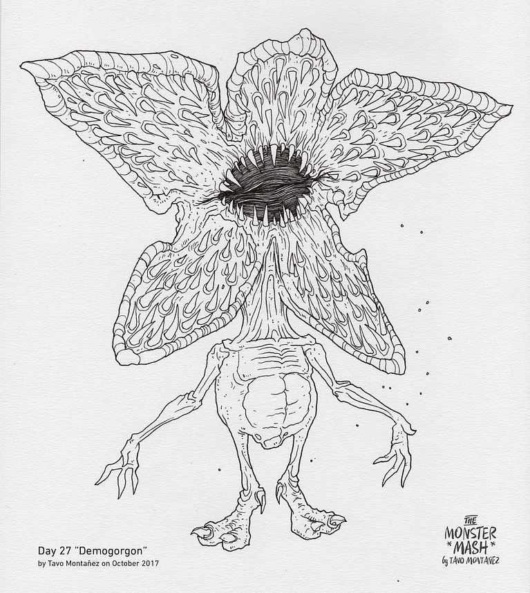 El reto Inktober de este 2017 ha girado en torno a los monstruos para el ilustrador mexicano Tavo Montañez. Uno de los últimos monstruos del reto es precisamente un Demogorgon.