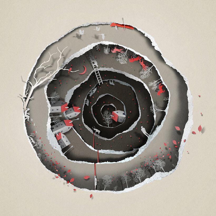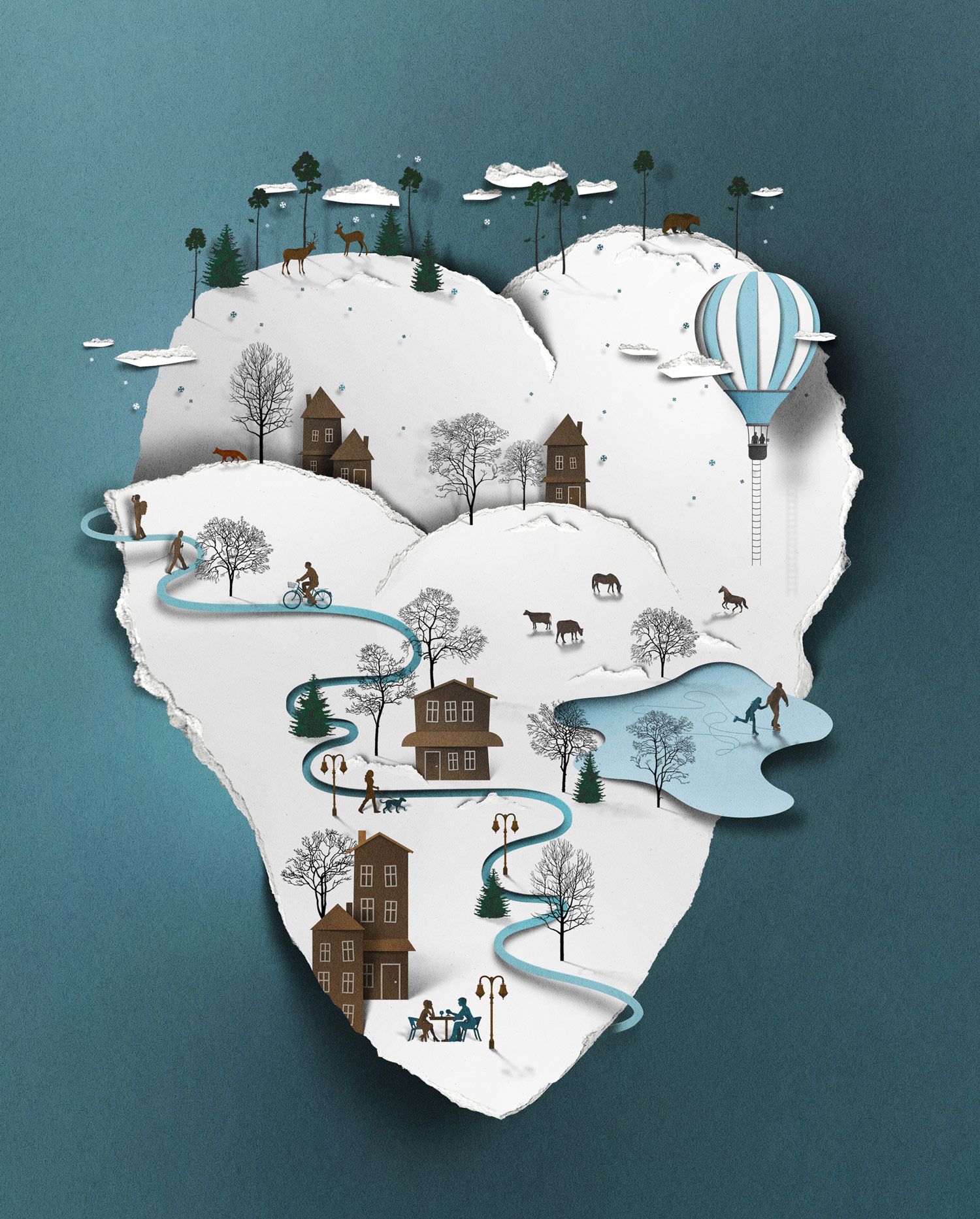 Eiko Ojala ha sabido hacer suyo un estilo que le permite convertir sus ilustraciones, dibujadas a mano por él mismo, en maravillosos trabajos de papercut digital.