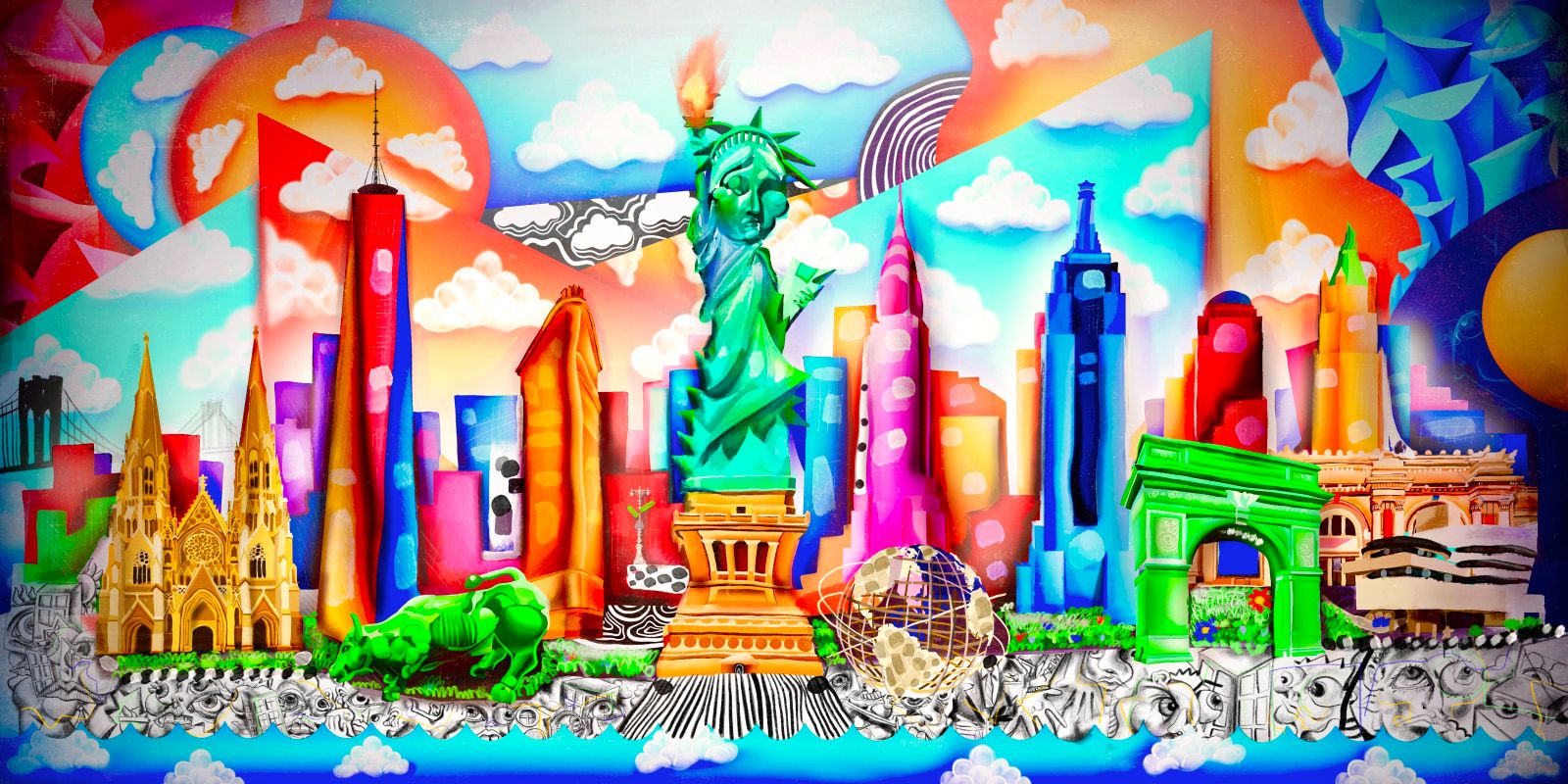 Muchos de sus trabajos incluyen palabras formadas por formas multicolores que llaman la atención mientras tratas de descifrar lo que dice.