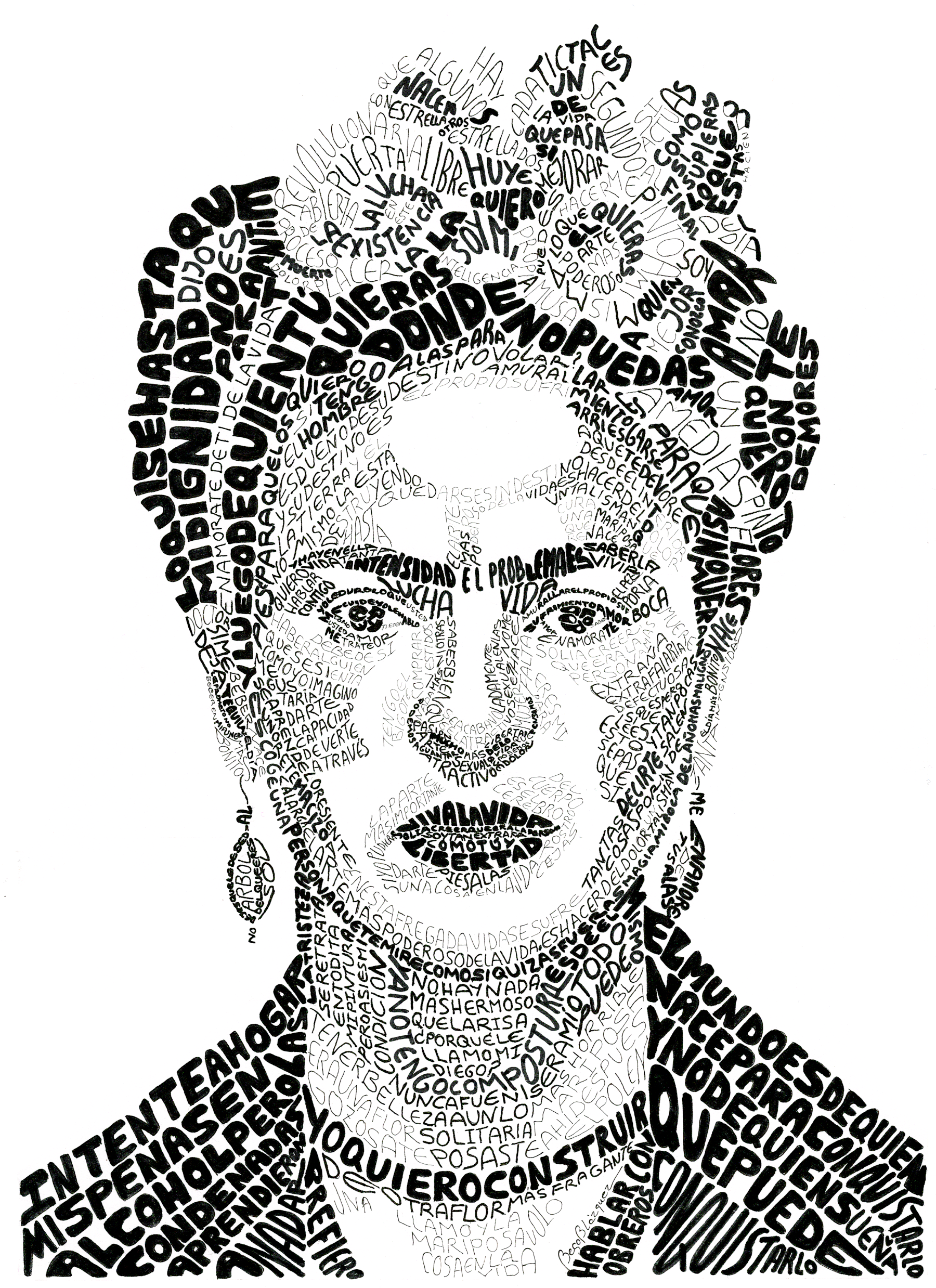 La artista e ilustradora Begoña Blázquez Parro (@bego_blazquez) ha creado este retrato de la pintora mexicana usando rotuladores calibrados sobre papel. El resultado es este espectacular dibujo. Una ilustración en la que se pueden leer frases motivadoras y lemas sobre la vida.