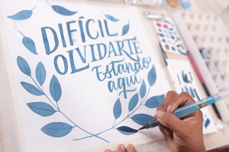 La caligrafía con pincel de agua y acuarelas permite dar color, textura y movimiento a tus composiciones para lograr un mensaje más potente. Es una técnica ideal para conseguir composiciones donde las palabras, a través de su forma y color, adquieren un nuevo significado.