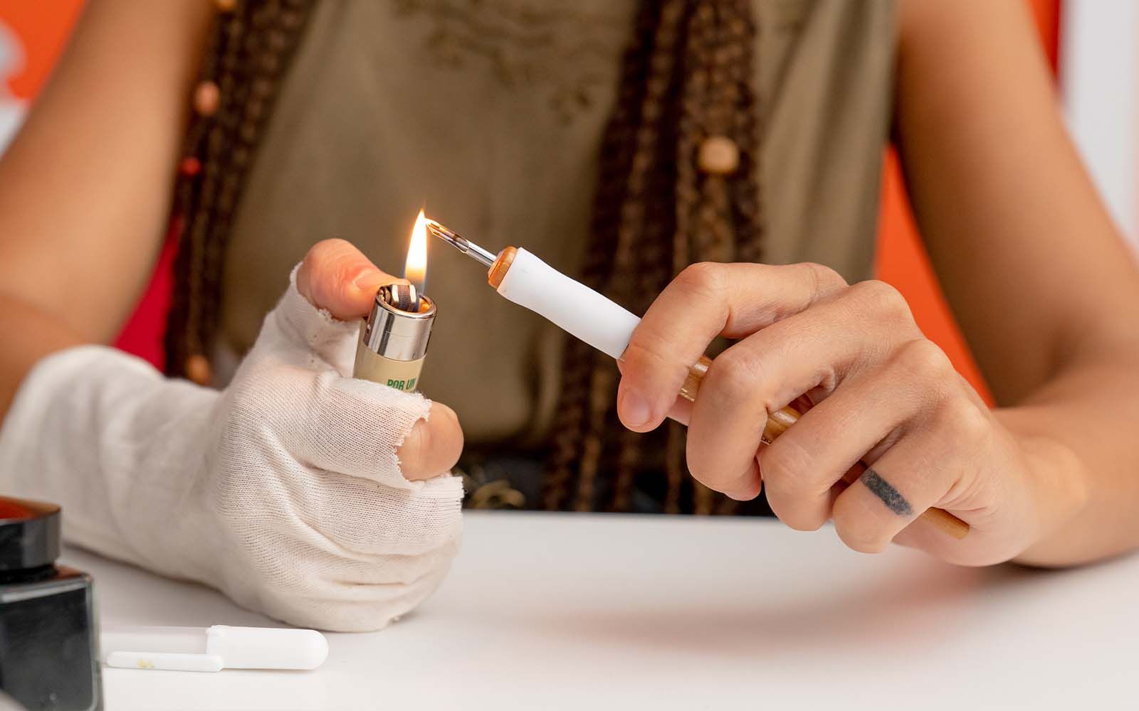 Consejo profesional: para evitar que las plumillas tengan grasa cuando vas a dibujar, sostén con cuidado un mechero bajo estas durante un par de segundos para limpiarlas (¡cuidado con los dedos!).
