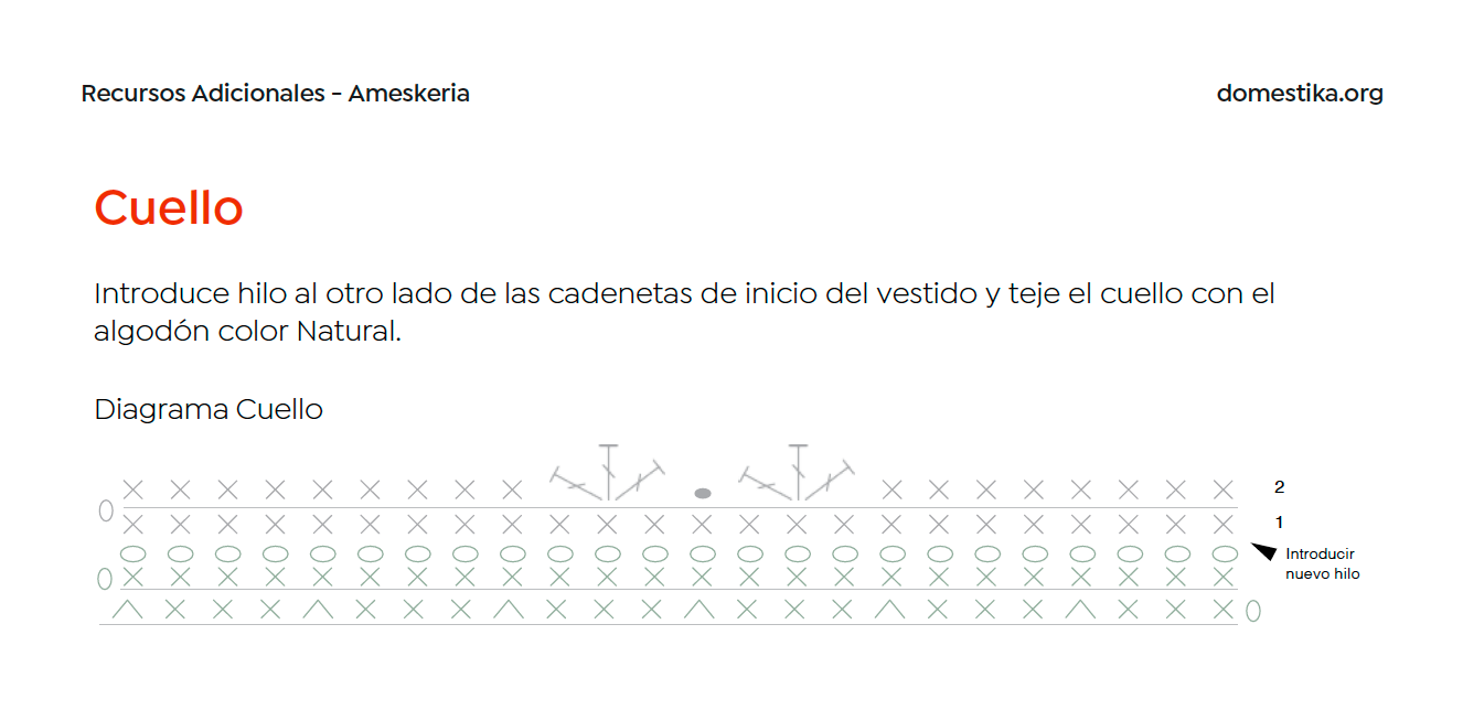Ameskeria detalla las medidas, materiales necesarios para realizar la pieza, leyenda de puntos y explica, paso a paso, la realización del vestido.