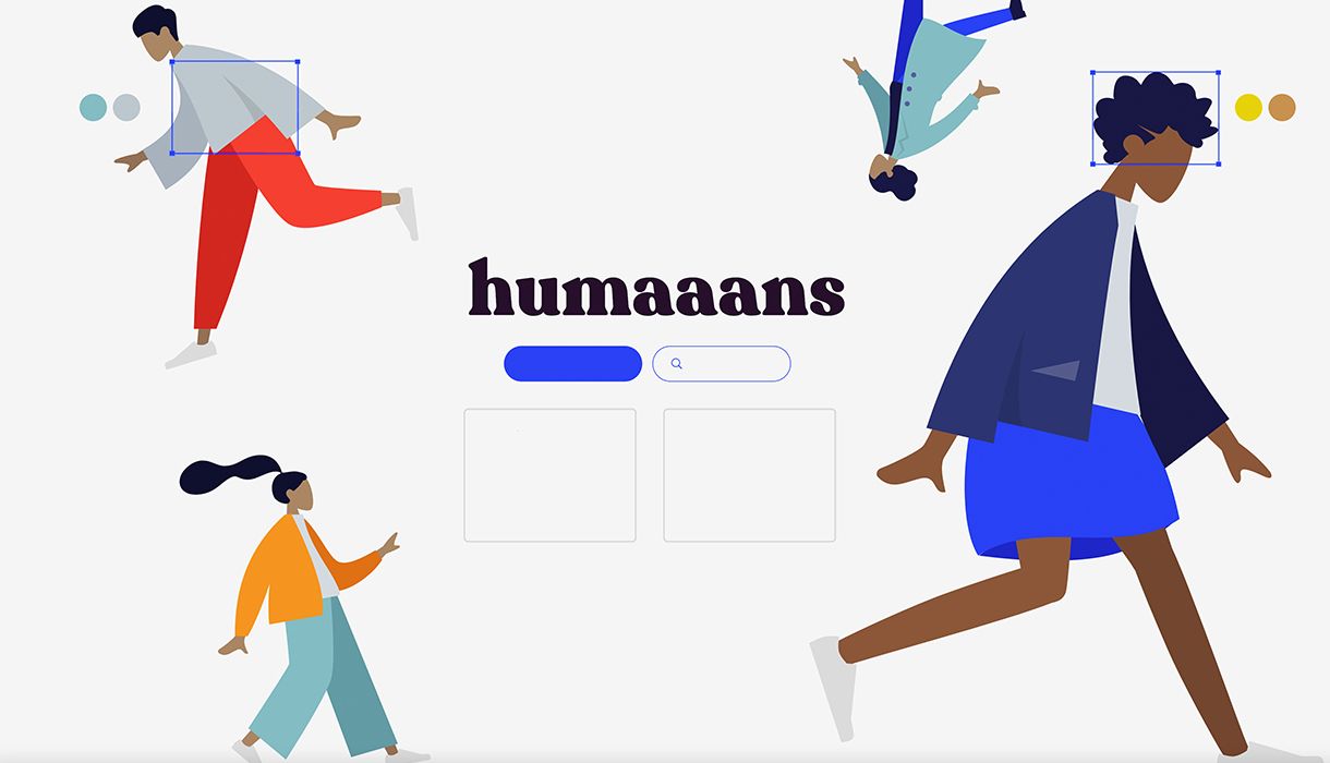 Esta peculiar página, como su nombre indica, está especializada en las ilustraciones vectoriales de personas. Las encontrarás en diferentes posiciones (de pie, sentadas, interactuando con diversos elementos…) aunque también es posible adaptar los cuerpos a la postura que prefieras. Además, con Humaaans podrás agregar fondos y personalizar vestuario, colores y peinados para que encajen con tu proyecto.
