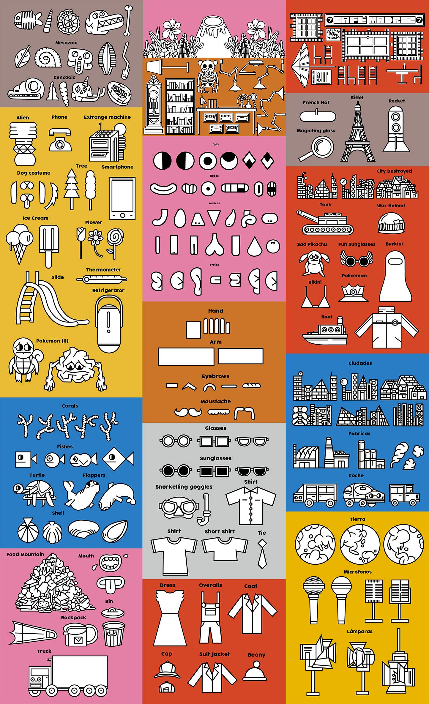Juan Díaz-Faes (@diazfaes) es colaborador necesario en este maravilloso proyecto, ya que ha sido el encargado de diseñar no solo el logotipo del programa, sino todos los escenarios, elementos, vestimentas y atrezzo que los niños utilizan para sus apariciones en los noticieros. El ilustrador español imprimió su sello característico en elementos del cuerpo humano, animales, edificios, ciudades, objetos, focos, micrófonos, paisajes y vestimenta; aunque son los niños quienes recortan cada pieza y la pintan a su gusto para ilustrar las noticias del modo que prefieren.