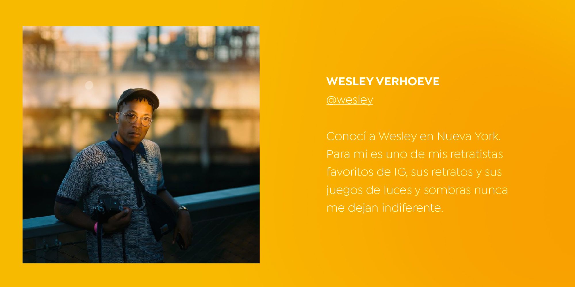 Los retratos y juegos de luces y sombras de Wesley no dejan indiferente a nadie que se pasee por su perfil. Es un capturador de instantes y retratos desde un punto de vista tan personal como único.