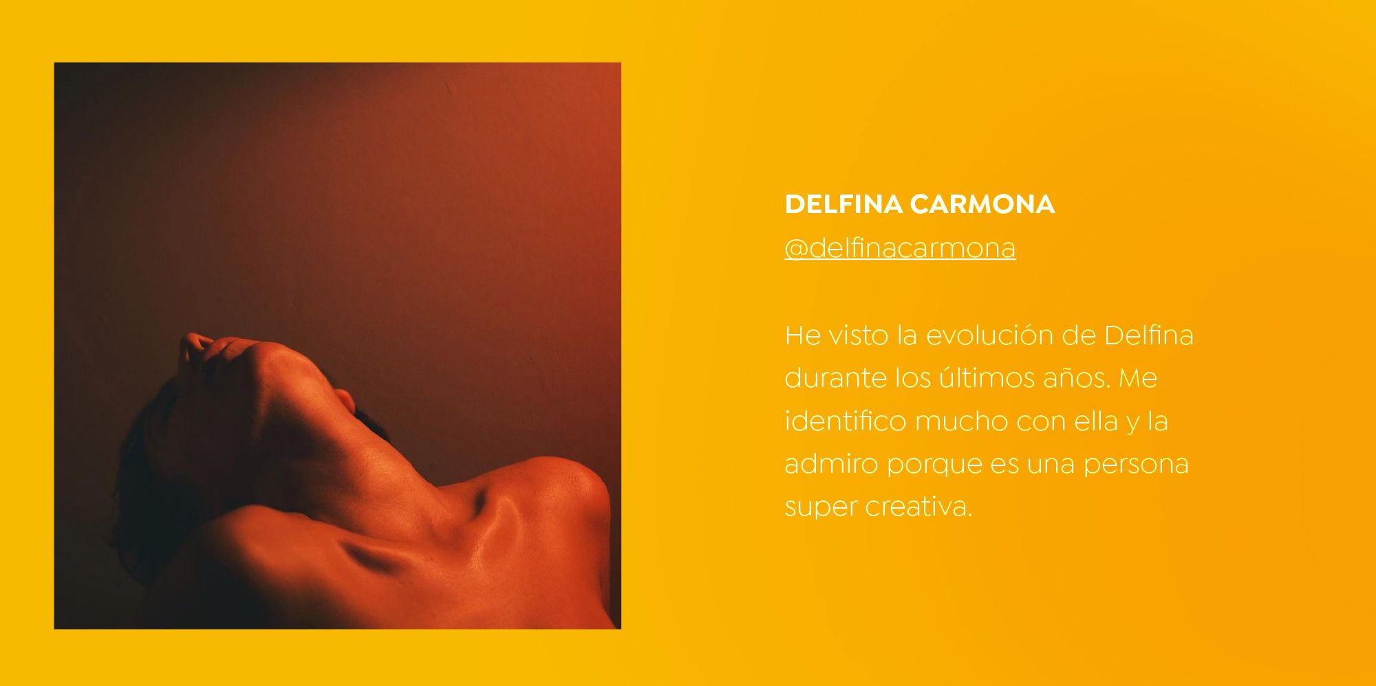 La creatividad de Delfina es evidente cuando ves cualquiera de sus fotografías. Construye escenarios con autorretratos y objetos con colores vibrantes teniendo como aliados los reflejos y las sombras.