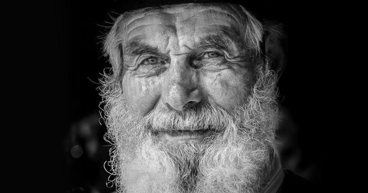 Cada rasgo, cada arruga, esa pequeña sonrisa, cada curva de su barba, cada instante de esa mirada ahí quieta atrapa al espectador. Un contraste en blanco y negro que hace aún más protagonista a este protagonista.