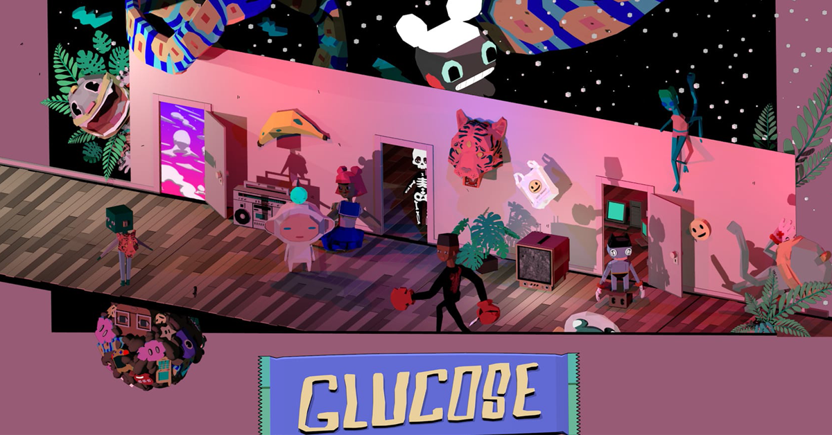 Glucosa es una sucesión de imágenes y ensoñaciones presentadas en un universo cúbico con tintes retro que nacen del subconsciente de un personaje de videojuegos que ha quedado k.o. tras un combate virtual. A partir de ahí comienzan a aparecerse ante nuestros ojos todo tipo de situaciones dalinianas que, sin embargo, tienen una conexión directa con el modo que hoy en día consumimos información a través de internet, sin un hilo conductor aparente, atando un argumento con otro de manera infinita.