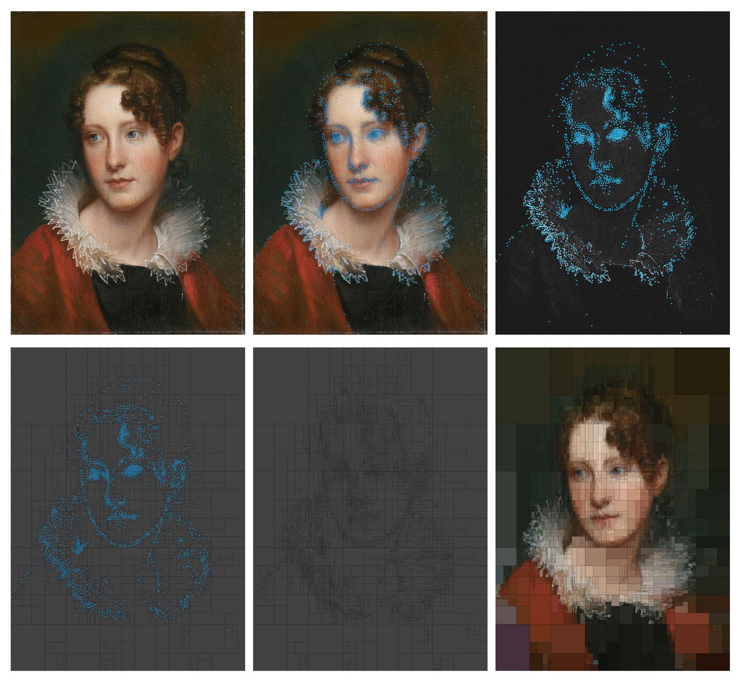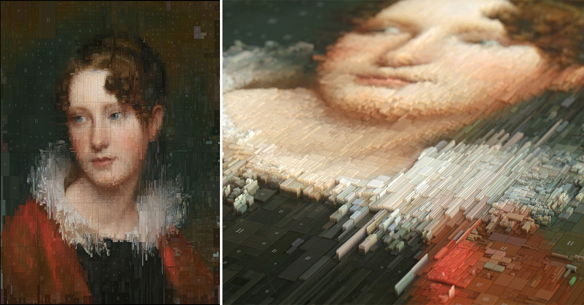 El resultado es una representación simplificada de los colores utilizados en cada retrato, que muestran una imagen pixelada del cuadro original y nos ayuda a estudiar el uso del color en estas obras. Además, Ladopoulos realizó una simulación 3D en la que muestra en detalle los diagramas de color extraídos de cada cuadro.