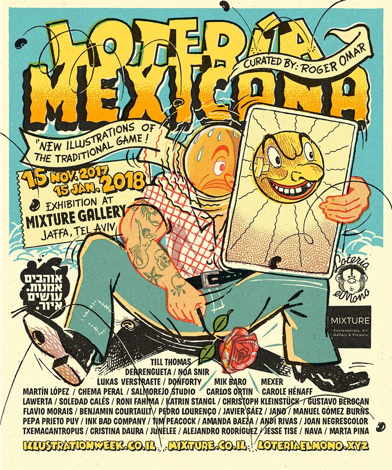 La lotería mexicana de Roger Omar fue presentada en Tel Aviv en el marco de la Illustration Week 2017, en una exposición en la que participaron 37 artistas de diversas nacionalidades: Benjamin Courtault (Francia), Carole Hénaff (Francia), Donforty (Grecia), Lukas Verstraete (Bélgica), Amanda Baeza (Portugal), Pedro Lourenço (Portugal), Katrin Stangl (Alemania), Christoph Kleinstück (Alemania), Till Thomas (Alemania), Mexer (Alemania), Flavio Morais (Brasil), Gustavo Berocan (Brasil), Roni Fahima (Israel), Noa Snir (Israel), Jesse Tise (Estados Unidos), Tim Peacock (Estados Unidos), Junelee (China), Joan Negrescolor (España), Mik Baro (España), Andi Rivas @andi_rivas (España), Lawerta (España), Jano @alejandro_vinuela (España), Salmorejo Studio @salmorejo_studio (España), Soledad Calés (España), Chema Peral @chema_peral (España), Ink Bad Company @inkbadcompany (España), Javier Sáez Castán (España), Carlos Ortin (España), Txemacantropus (España), Marta Pina (España), Cristina Daura @cristina_daura (España), Derrengueta (España), Pepa Prieto Puy (España), Manuel Gómez Burns (Perú), Martín López Lam (Perú), Alejandro Rodríguez León (México) y Nava (México).
