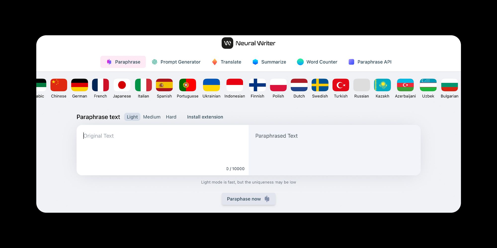 Nuestra última opción, Neural Writer, emplea algoritmos avanzados de IA para ofrecer prompts de alta calidad y admite la colaboración en tiempo real. Aunque ofrece una versión de prueba gratuita, la versión premium tiene un precio más elevado. No obstante, para quienes estén dispuestos a invertir, sus funciones avanzadas la convierten en un valioso recurso para mejorar tus prompts creativos.