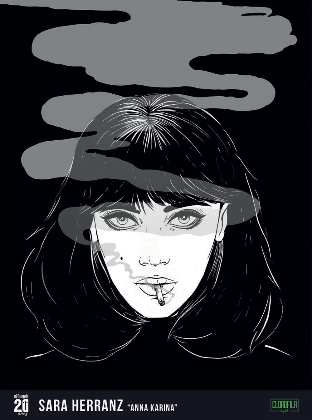 La mítica revista cultural madrileña, El Duende, cumple 20 años y para celebrarlo ha invitado a veinte grandes ilustradores a interpretar con su propio estilo algunas de las escenas más representativas del cine y a retratar a sus directores y actores favoritos. El resultado es '20 años en cartel, más de 20 ilustradores en cartelera. Ilustraciones de cine', una enorme colección de ilustraciones dedicada a los grandes clásicos del séptimo arte que puede visitarse en la Galería de Cristal de CentroCentro, en Madrid.