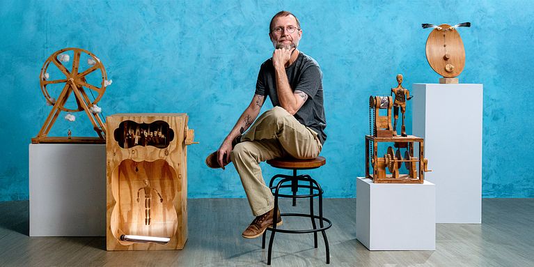 En su curso “Autómatas de madera: crea esculturas con movimiento”, Eduardo te enseña a fabricar un autómata que imita el movimiento de las olas y el vuelo de un pájaro. Desde el boceto inicial hasta el último tornillo, descubrirás cada paso para dar vida a tu propia creación.