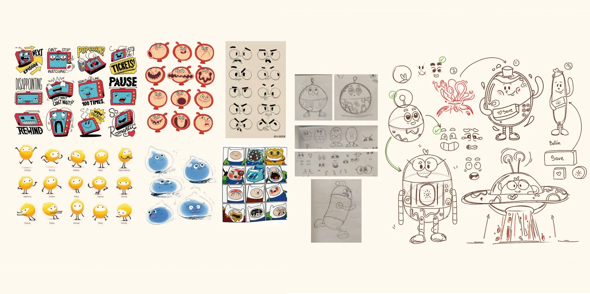 Por otro lado, el proceso creativo comenzó con el estudio de mis bocetos y notas previas, además, de un análisis exhaustivo de referentes de personajes, historias e ilustraciones en general.