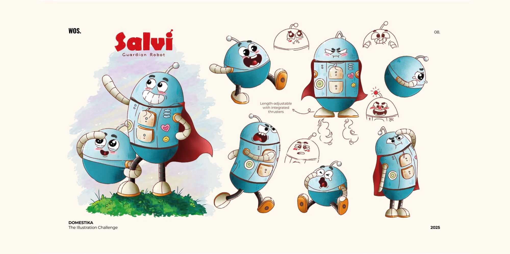 Los primeros cursos que vi en Domestika tuvieron un impacto significativo en mi trayectoria. En particular, recuerdo con especial gratitud: Ilustración digital de personajes: conceptualización y color de Pamela Espino; Diseño de personajes para animación con Photoshop de Caio Martins; y Técnicas de expresión para animación de personajes de Memé Candia. Estos cursos me brindaron las bases para dar pasos más seguros y profesionales en mi carrera. Gracias a ellos, comencé a comprender mejor la creación de personajes con personalidad propia, a través de la composición, el color y las técnicas de expresión.