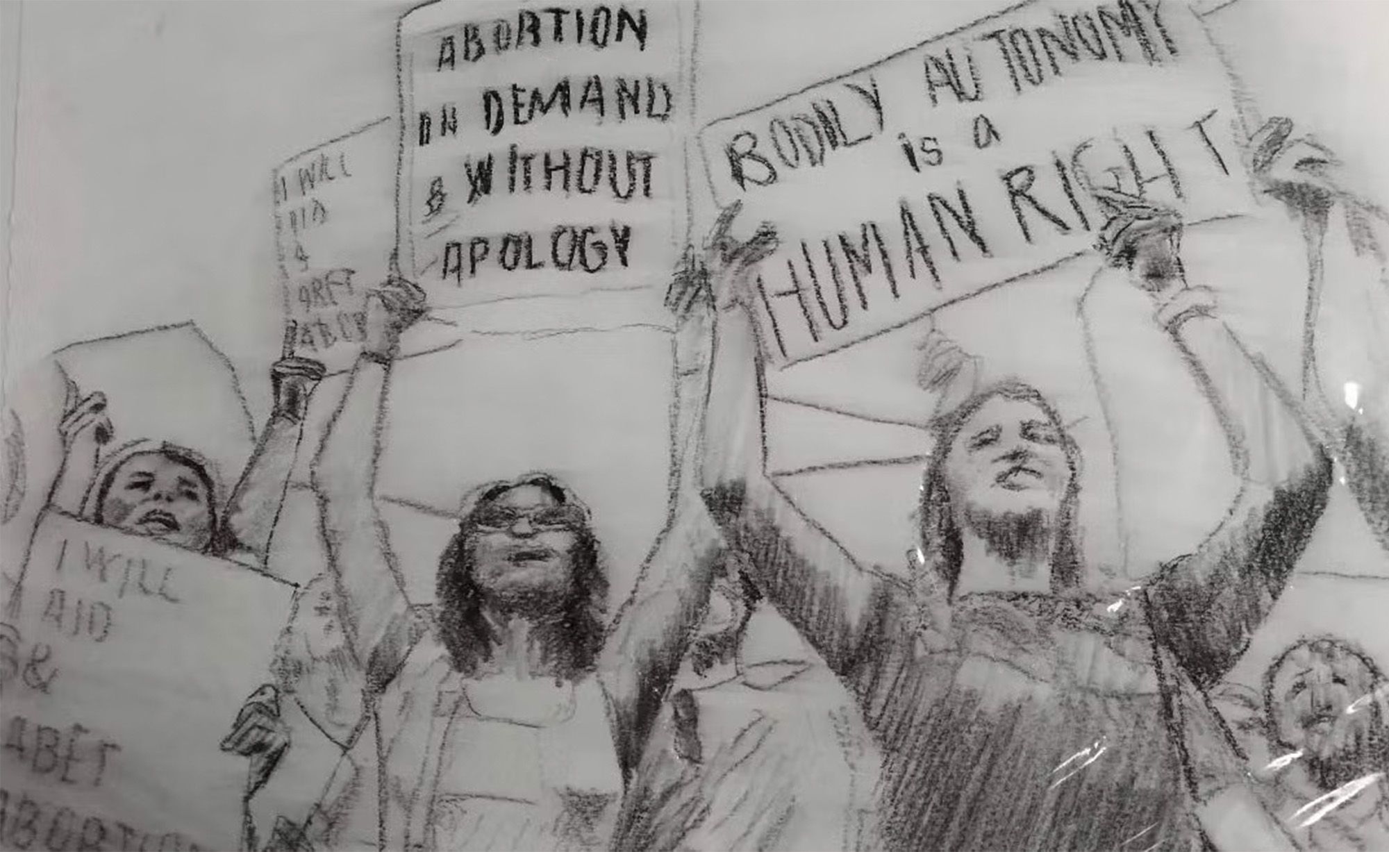 6. Serie de dibujos feministas a carboncillo y acrílico