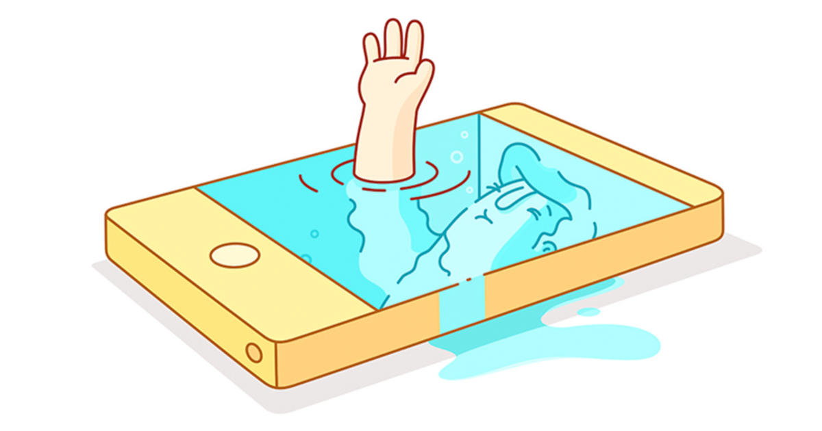 Este ilustrador plantea un problema urgente gracias a celulares que ahogan y adicción a los likes.