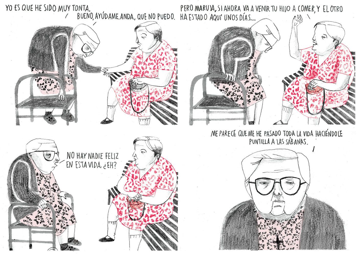 "Las mujeres de su generación, a quienes no solemos cuidar como ellas nos cuidaron, siempre han sido personajes secundarios de otras vidas: la esposa de, la madre de, o la abuela de. Como Maruja y Herminia. Sus anécdotas, sus ideas y su mundo están aquí, en este libro, un pequeño homenaje que quiere convertirlas en protagonistas."