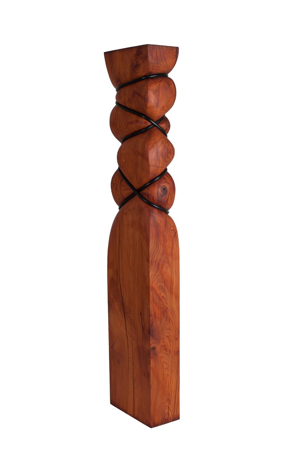 Me imagino que la madera es un material maleable, lo suficientemente viva y suave para ser estirada o aplastada por los demás. ¿En qué forma se convertiría si se sujetara con metal o se enrollara con una cuerda? Trato de imaginar cómo afectaría esto a la superficie de la madera, ya sea causando arrugas o estirándolas suavemente, abriéndola para exponer su belleza interior.