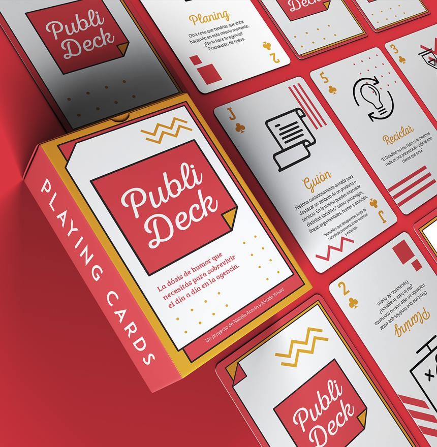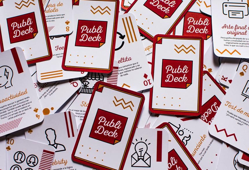 “Public Deck” es un decálogo de 52 cartas que explican con muy buen humor y diseño esos términos y plabaras rebuscadas que usamos todos los días en el medio publicitario; funciona como vehículo para hacer un trayecto más ligero a cualquiera que viva todo el día en el mundo de “presupuestos”, “clientes” y “vueltecitas a las ideas”.