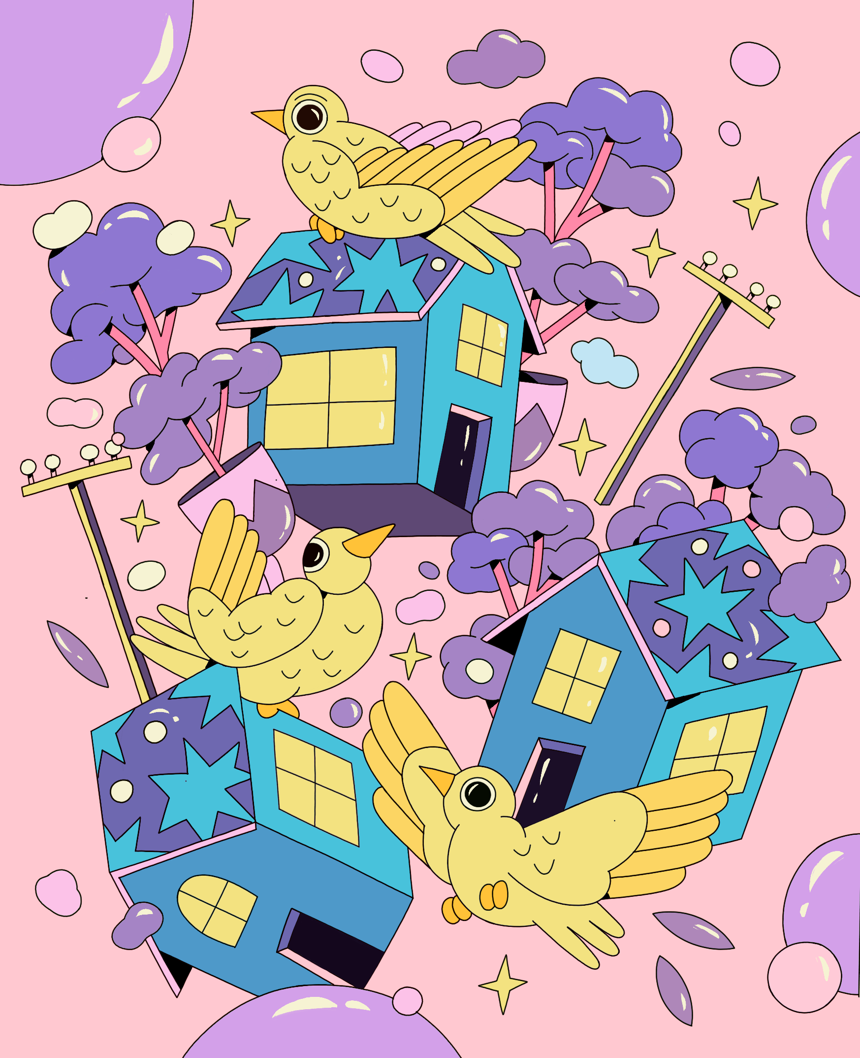 Define su estilo como "dreampop gráfico". En sus ilustraciones busca interpretar y plasmar historias a través de la narración gráfica, creando una sensación surrealista entre formas fluidas y orgánicas, y usando paletas de colores cálidos. Conversamos con ella para conocer más de sus influencias, surrealismo y admiración por Kusama: