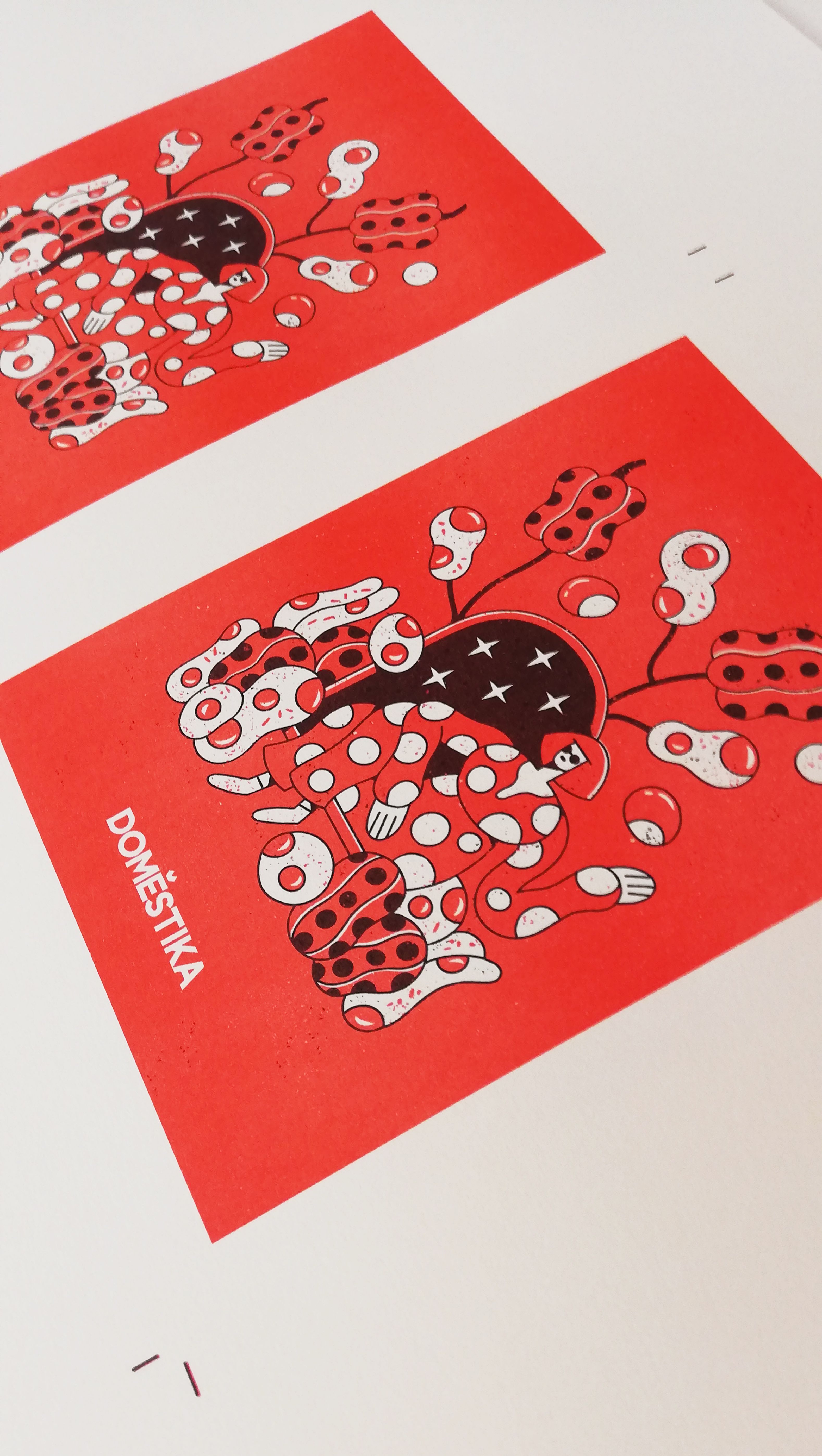 La ilustración de Valeria Álvarez fue impresa en una serie de risografías numeradas que se regalarán a los asistentes hoy 21 de marzo en la segunda edición de Cine Domestika que tendrá lugar en Cine Tonalá en la Ciudad de México. Los encargados de su impresión fueron SARA (Sociedad Anónima de Reproducción Autogestiva), una pequeña imprenta mexicana cuyo objetivo es que la producción y adquisición del arte sean viables para todos.