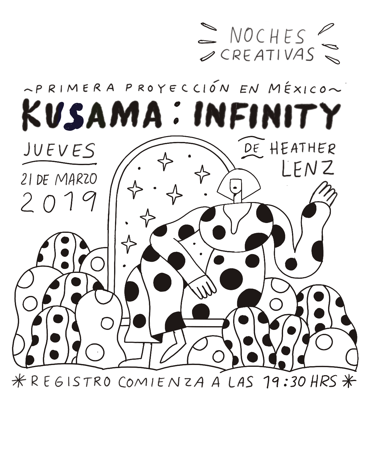 Este hermoso trazo imperfecto se nota en la ilustración que hiciste para el documental que se proyectará en la segunda edición de Cine Domestika, ¿te gusta el trabajo de Yayoi Kusama? ¿en qué crees que podría conectarse su obra a la tuya?
