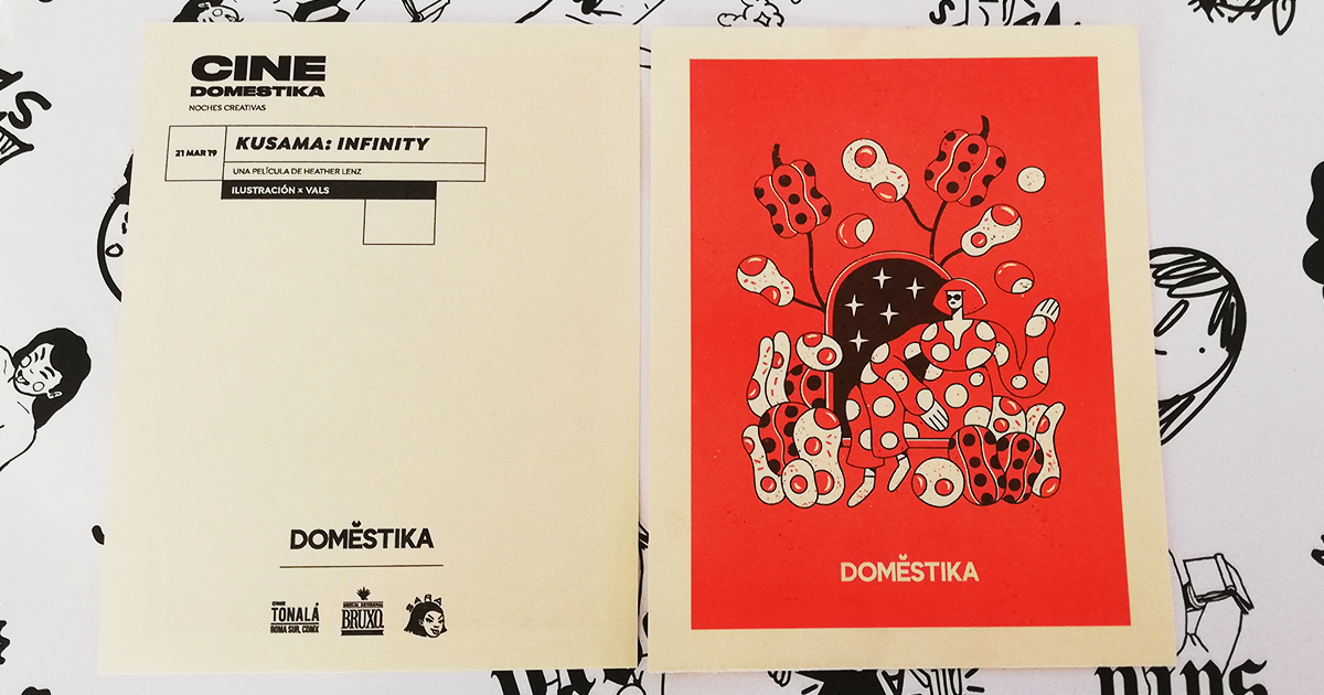 Hoy 21 de marzo se proyectará Kusama: Infinity en la segunda edición de Cine Domestika en Ciudad de México, y Valeria Álvarez, mejor conocida como Vals (@vals421), ha sido la encargada de realizar el cartel del evento. Esta joven ilustradora ha hecho su medio de vida el gusto por el arte que tomó desde su niñez en talleres de pintura y grabado. Ese gusto se fue acrecentando, y la llevó a estudiar a estudiar Diseño y Comunicación Visual en la Facultad de Artes y Diseño de la UNAM.
