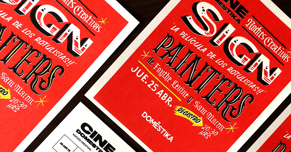 El jueves 25 de abril se celebró la tercera edición de Cine Domestika en el Cine Tonalá, localizado en la Colonia Roma (Ciudad de México). Se proyectó Sign Painters, un documental que retrata la belleza del arte de pintar letras, una carta de amor para quienes mantienen vivo el arte del lettering y los rótulos.