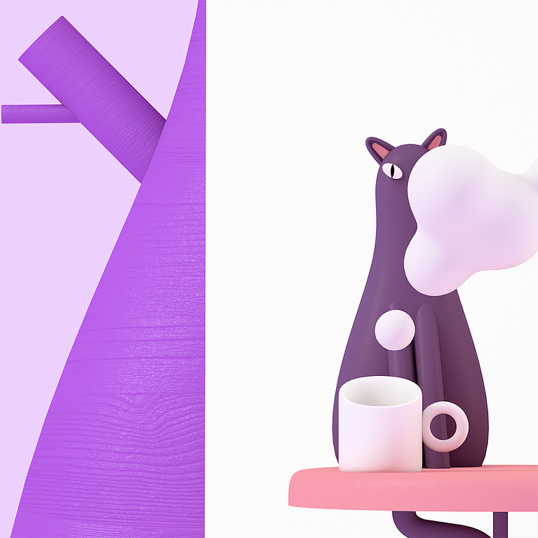 Algo que a Horacio le gusta mucho hacer en las ilustraciones 3D es añadirle textura en 2D. Por ejemplo, en este caso se puede ver en la maceta, "creo que le da un toque más fresco y divertido a la pieza final. Me gusta jugar con varias texturas para ver cuál queda mejor, incluso añadir texturas un poco más reales para generar un contraste entre las estéticas; como se puede apreciar en el árbol".